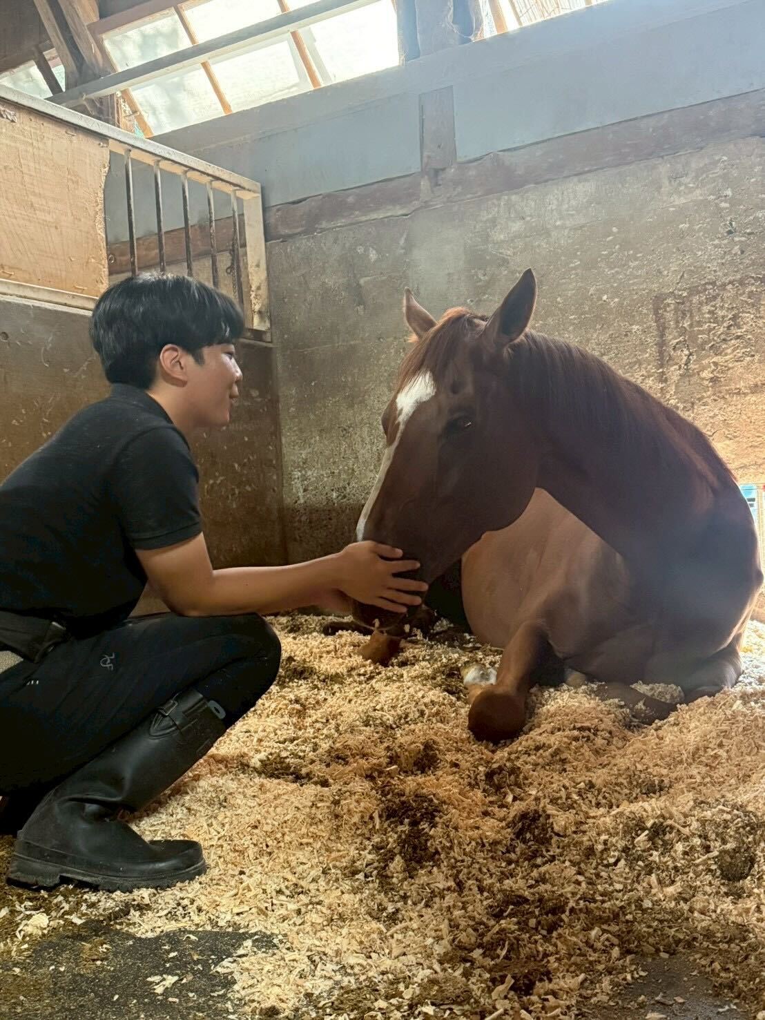 昨夜(11月10日)、桜吹雪(サトノダンディ)が腸破裂の疑いで予後不良となったため、ご報告いたします。2025年4月16日に入厩して以来、障害の練習馬として部に多大なる貢献をしてくれました。穏やかで可愛らしい性格から、部内外問わずとても人気で日々の癒しでした。非常に短い期間となってしまいましたが、桜吹雪への感謝を忘れず、部員一同今いる馬たちをより一層大切にしてまいります。
